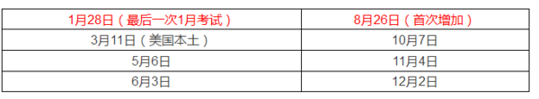 据Collegeboard官网介绍,新的调整将从2017年8月开始:2017年1月28日将是最后一次1月进行的SAT考试,2018年1月将不再有SAT考试。也就是说,2017年全年将有8次考试,比正常的7次多了一次。日期分别是: