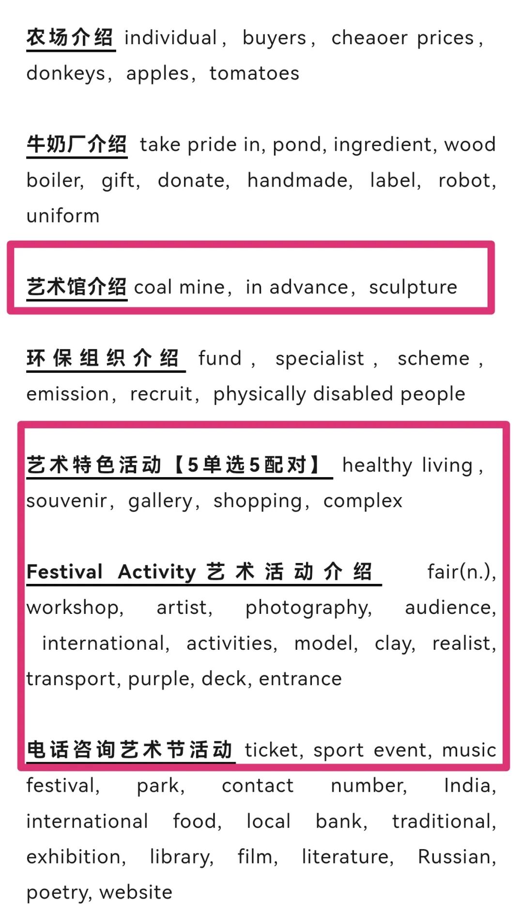 艺术特色活动 【5单选5配对】 healthy living,souvenir,gallery,shopping,complex