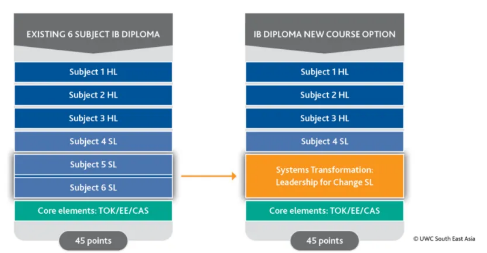 在选课结构上,改革打破了原先 “六大学科组各选一门” 的固定规则,推出更具灵活性的选课模式:学生仅需完成 4 门必修科目,其中包含 3 门高阶课程(HL)与 1 门标准课程(SL),同时仍需满足 TOK(知识论)、EE(拓展论文)和 CAS(创造、行动与服务)三大核心课程要求。