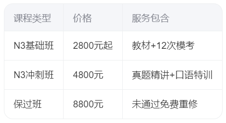 选择N3培训机构需平衡价格与效果。新航道通过透明收费、专业师资和智能教学系统,为成都学员提供高效备考方案。建议根据学习基础选择课程类型,并通过试听确认匹配度。