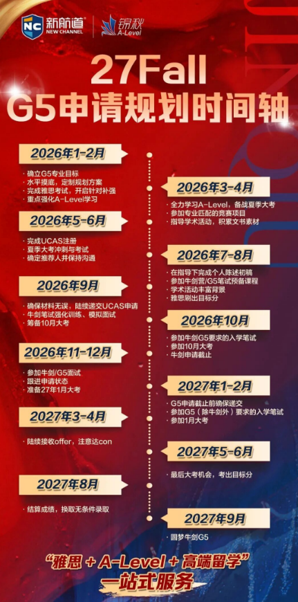 1)如果你现在正处高二,可以选择1.5年制A-Level课程,26年10月递交申请,等待27年8月考试出分后即可9月入读大一;如果考不出成绩也可以延迟一年,英本三年制相比国内普高本科生也可以实现同时毕业!