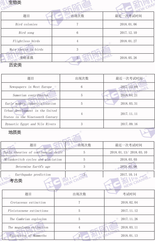 通过新航道成都托福培训老师对近三年试题的发展趋势追踪,发现生物类、历史类、地质类、考古类是常常出现在考题之中的。在 2018 年下半年的托福考试中,生物类依旧是重头戏,仍旧是托福阅读高频次的学科话题。古生物学中会集中考察生物的灭绝,尤其是恐龙灭绝的话题,今年6月份刚刚考过,下半年很有可能会继续考察;生物学中讨论动物、植物的各类适应环境的进化特征仍旧是主流话题。