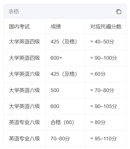 注:该对照仅为经验性估算,因考试形式与评分标准不同,无官方换算表。
